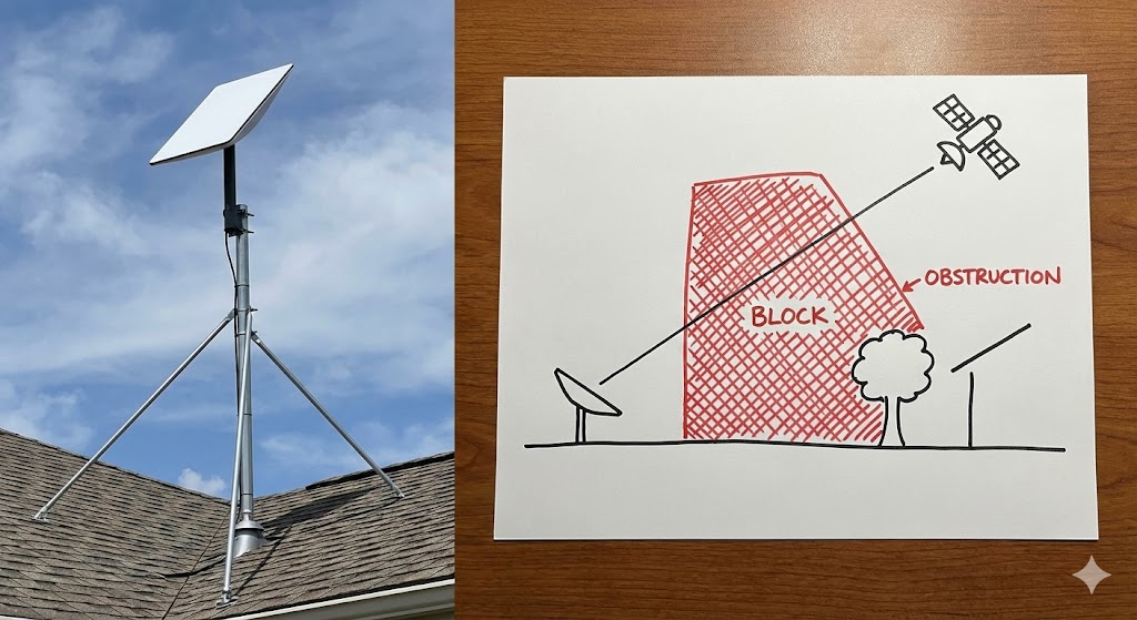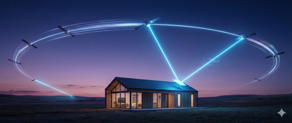 Fato Curioso: É por isso que a Starlink exige uma visão desobstruída do céu. Se tiver uma árvore no meio, a troca de satélites falha e sua internet cai por 2 segundos. É uma “dança” precisa que exige céu limpo.