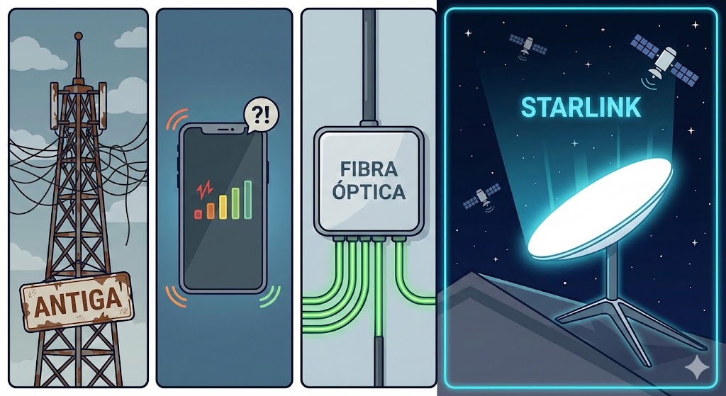 A Tecnologia: Por que a Starlink é diferente da “Internet de Fazenda” antiga?