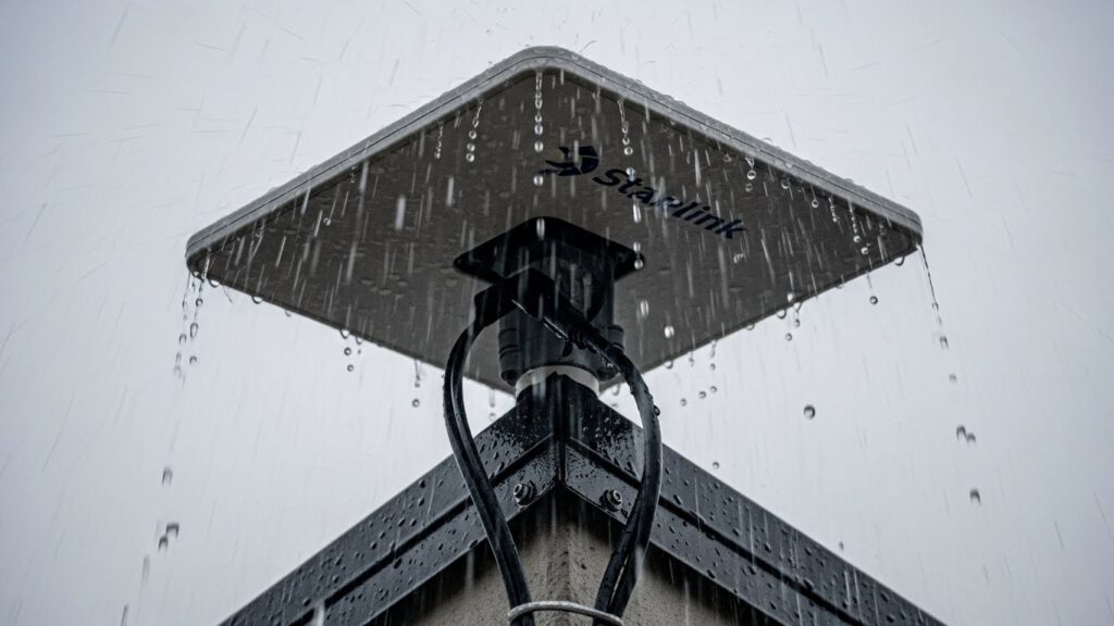 A Starlink usa frequências de rádio (Bandas Ku e Ka) que, fisicamente, têm dificuldade de atravessar água. Mas a engenharia da SpaceX avançou muito. A resposta curta é: Ela aguenta chuva muito melhor que as antigas, mas não é mágica.